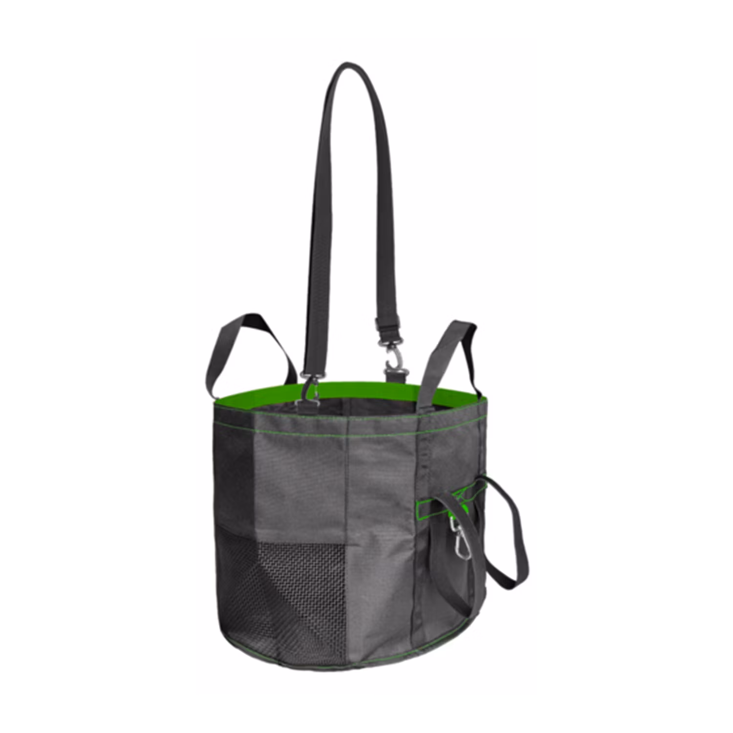 En användbar väska med nätbotten och -sidor för bästa luftgenomsläpp. Diameter: 26 cm Höjd: 23 cm Väskan rymmer cirka 12 liter. Passar bra för bär, svamp och frukt. Kan vikas ihop så den får plats i benfickan, eller hängas i bältet eller på ryggsäcken med karbinhaken som sitter på väskan.