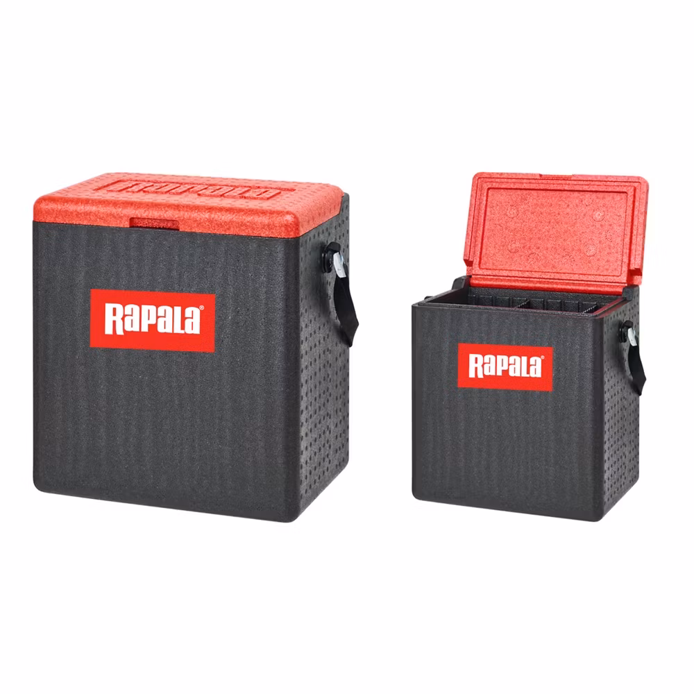 Rapala Seat Box Gen.2 är gjord av ett isolerande starkt frigolitmaterial som är varmt och bra att sitta på när man isfiskar.