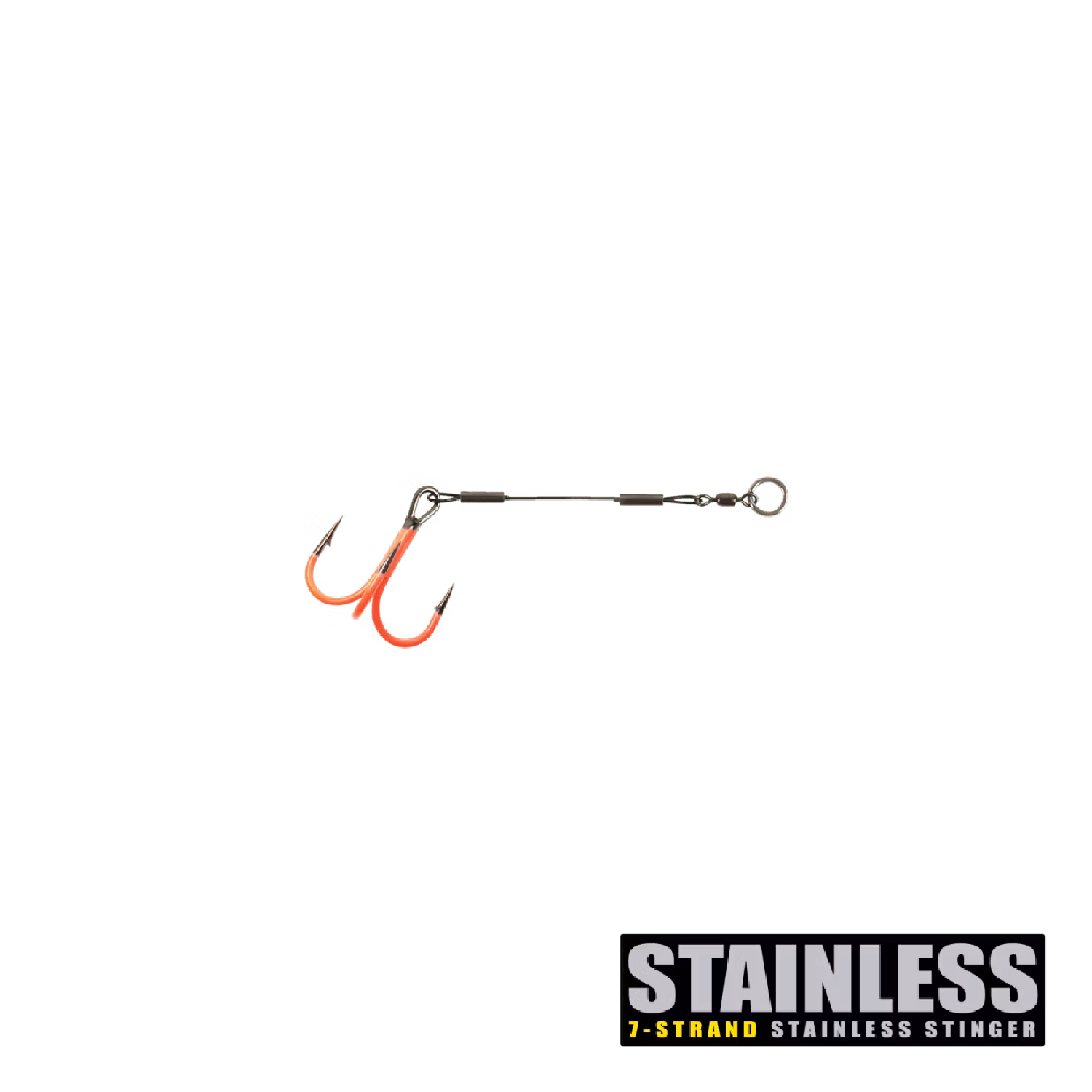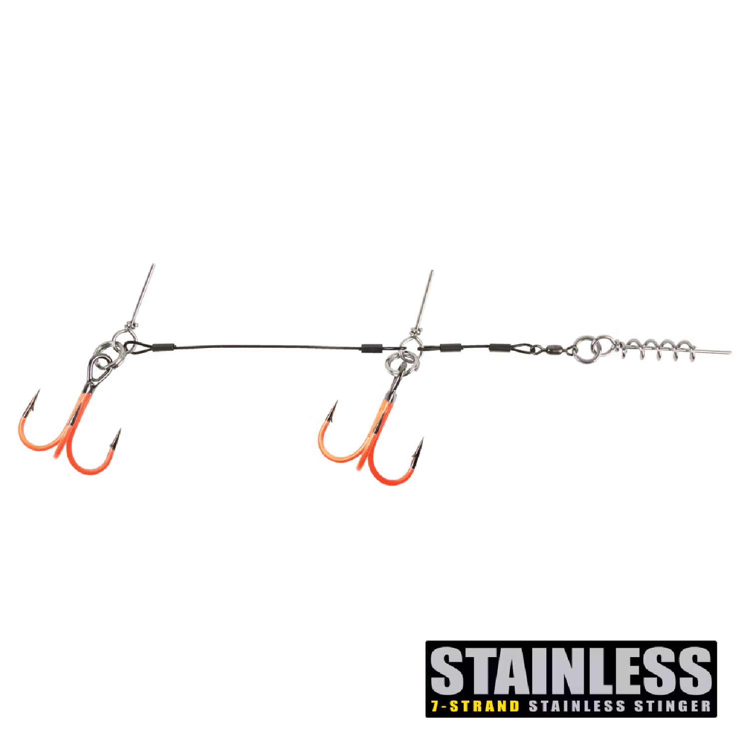 CWC PRO Stingers är gjorda av nylonbelagd 7-trådig rostfri tråd med rostfri BFT Crane swivel och plastbelagda låshylsor i koppar. CWC Stinger Spike och Shallow Screw utrustad med tillplattad 2X-Strong fjäderrin, Varje stinger är utrustad med en laserslipad UV-belagd trekrok.